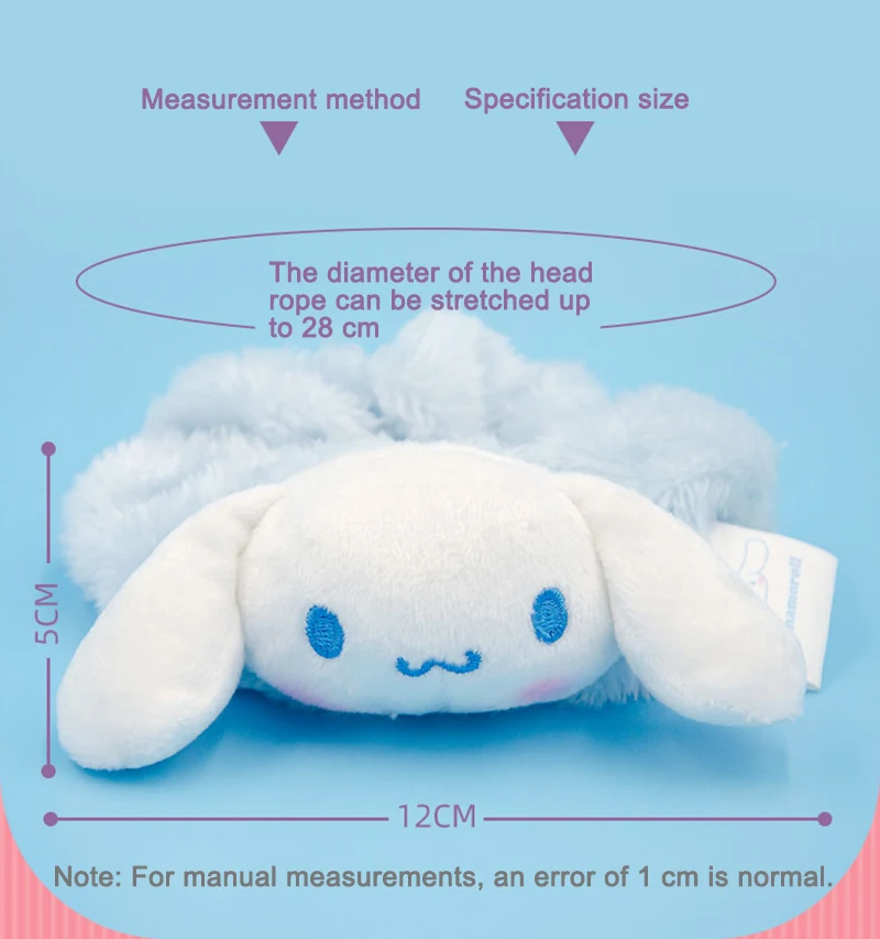 Adorable Kawaii Sanrio Plush Makeup Headband - Anime-Inspired Hair Scrunchie Featuring Melody, Kuromi, and Cinnamoroll - Perfect Hair Accessory for Girls!